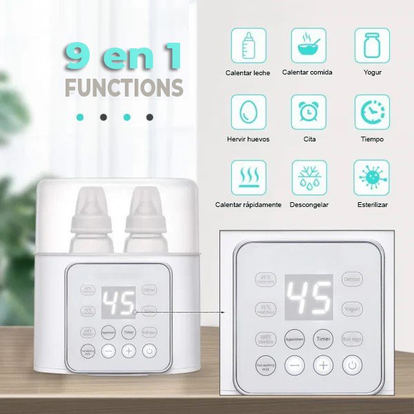 Calientabiberones multifuncional – rápido, seguro y práctico Calienta la leche y los alimentos de tu bebé en minutos, con control preciso de temperatura y función de esterilización. Compacto, seguro y fácil de usar, ideal en casa o de viaje.