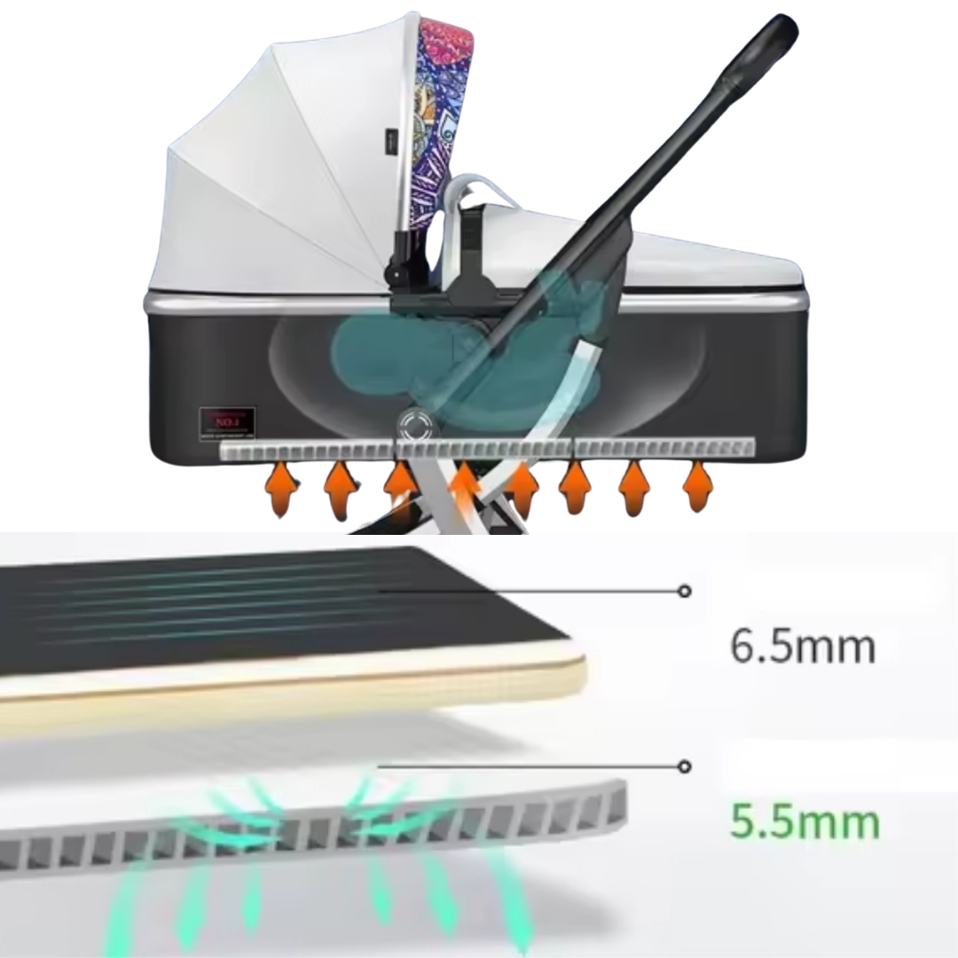 - Textiles desmontables e hipoalergénicos, fáciles de limpiar y seguros para la piel del bebé.
