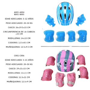Este set de protección ha sido diseñado especialmente para niños y niñas de 5 a 12 años, combinando comodidad, estilo y máxima seguridad en cada aventura.